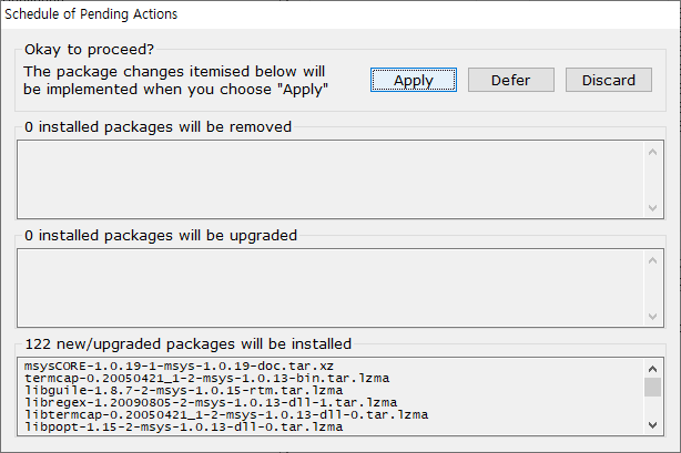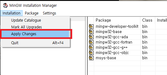 메뉴에서 Installation > Apply Changes