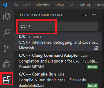 1. Extentions에서 C/C++ 확장팩 다운로드