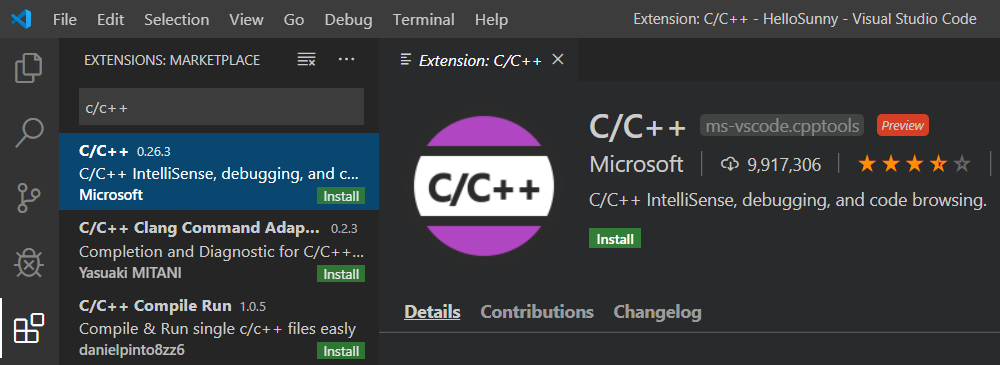 C/C++ 을 검색하면 가장 첫번째로 나오는 모듈이 있어요.