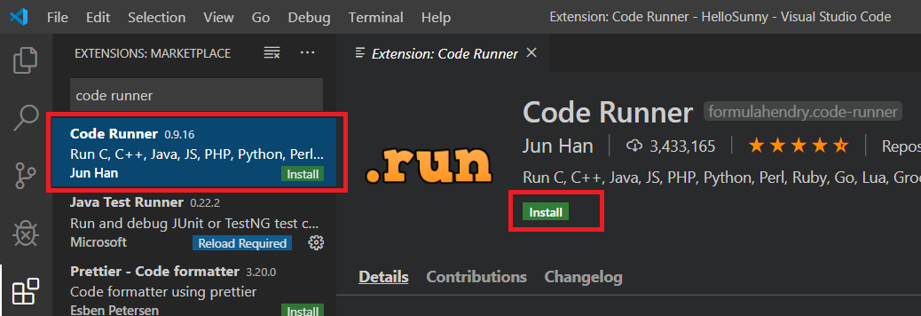 위와 같은 방법으로 code runner를 검색창에 입력하고, 다운로드 받습니다.