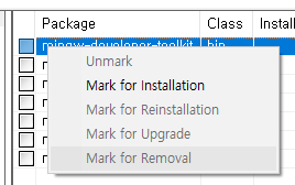 패키지 다운로드를 위해서는 목록에서 우클릭 > Mark for Installation